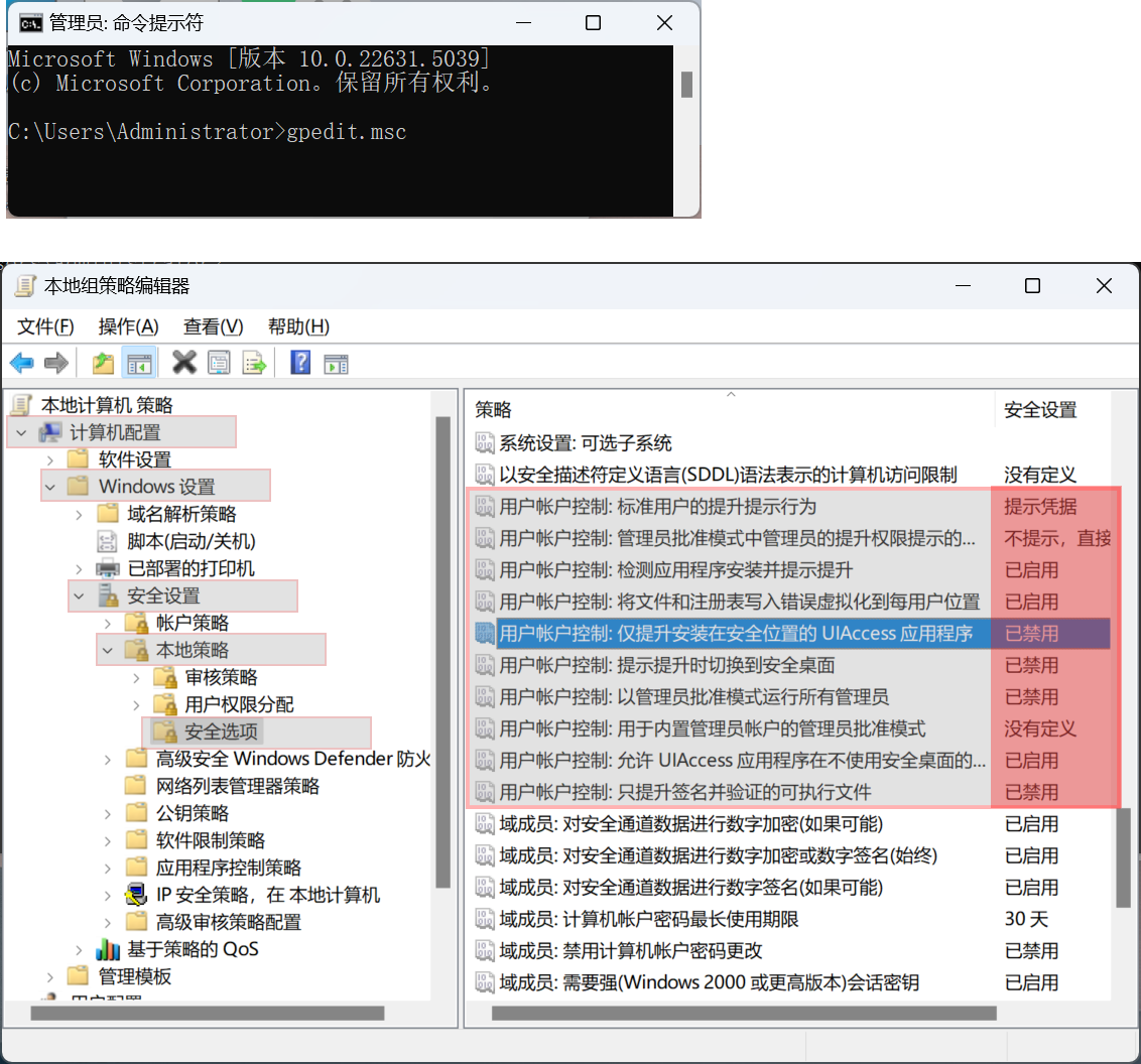 由于锁屏程序使用了管理员权限,及在内部还有提权(以盖过任务栏、任务管理器),所以需要管理员手动配置UAC。